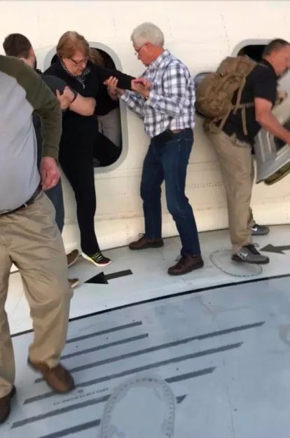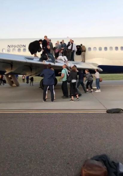 Pictures on social media showed them standing on the plane's wing during the evacuation.